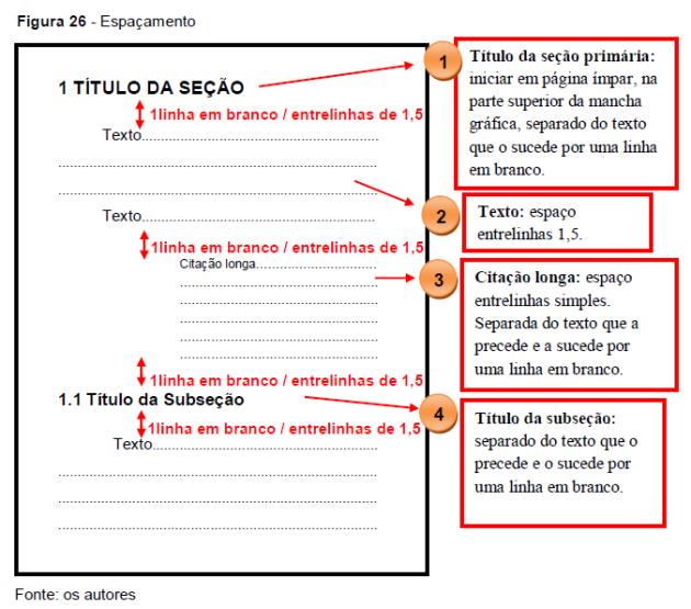 Para os espaçamentos entrelinhas recomenda-se seguir as seguintes regras: